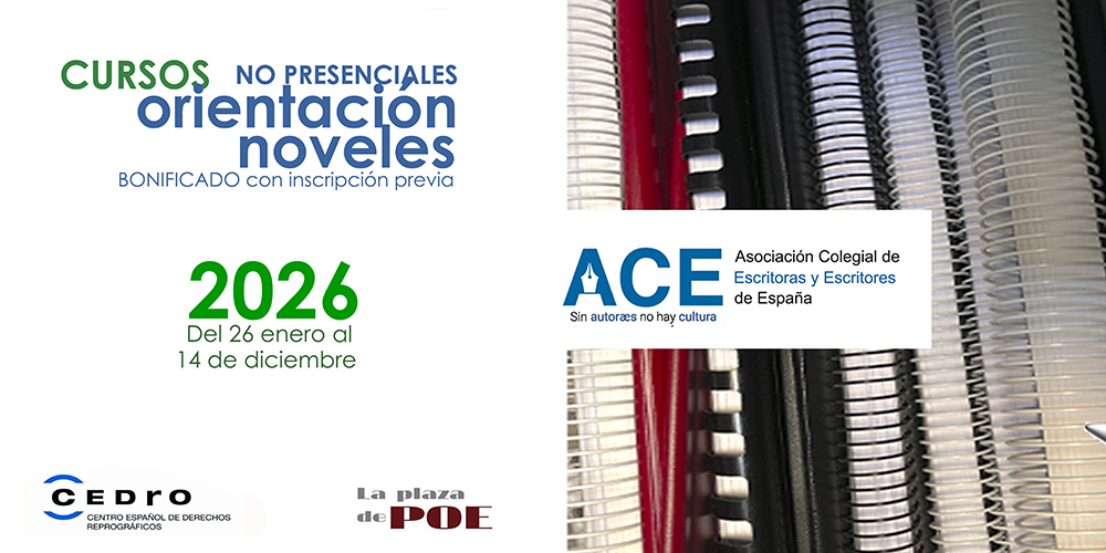 Comienza el segundo bloque del VI CURSO DE ORIENTACIÓN para ESCRITORES NOVELES 2026 patrocinado por ACE y CEDRO. Es un curso anual implementado por La plaza de Poe, de orientación creativa, editorial y legal, para aquellos escritores y escritoras que comienzan su andadura literaria. Desde hace años venimos acompañando a los autores en el recorrido detallado, y muy completo, por todos aquellos aspectos que cualquier escritor novel debería conocer.