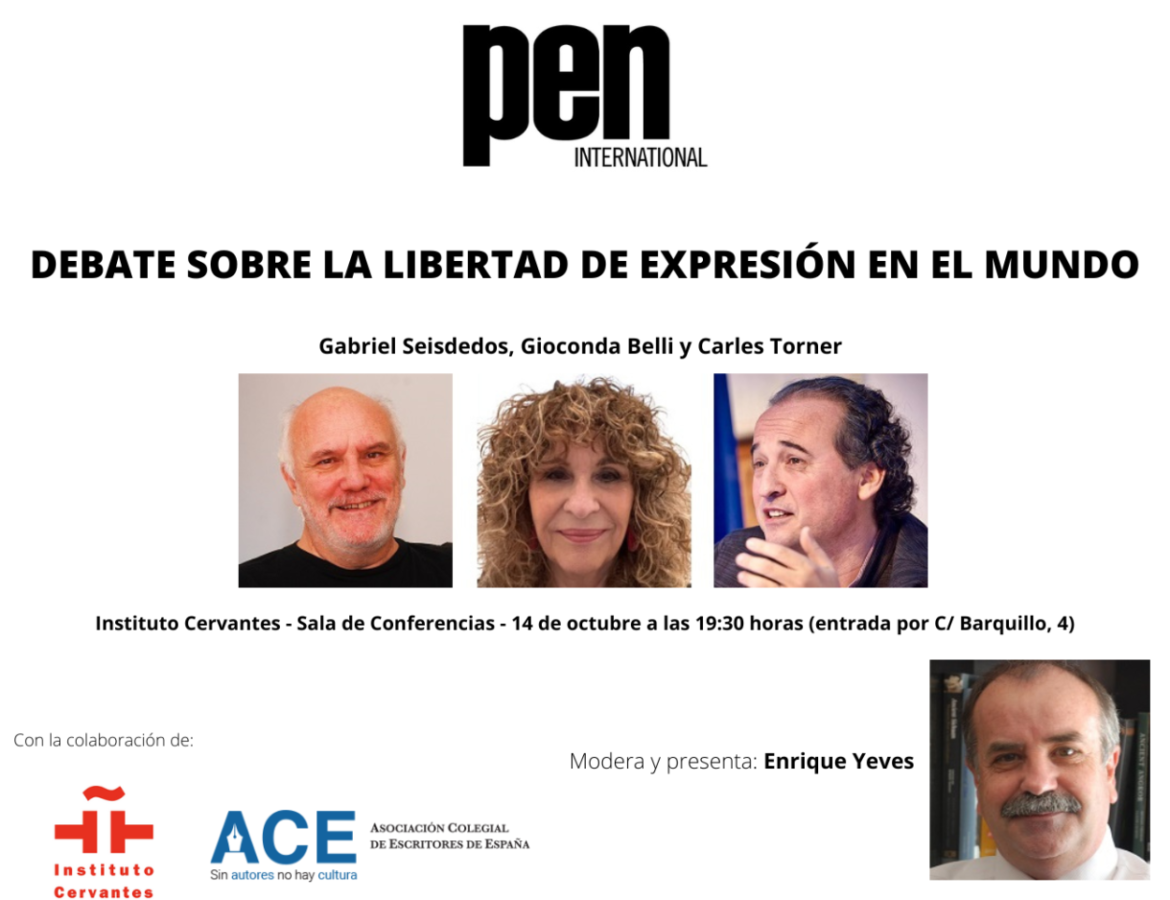 El debate cuenta con la participación de Carles Torner, Vicepresidente de PEN Internacional, Gabriel Seisdedos, Presidente del Centro PEN Argentina y miembro de la Junta Directiva de PEN Internacional y Gioconda Belli, poeta y novelista nicaragüense.