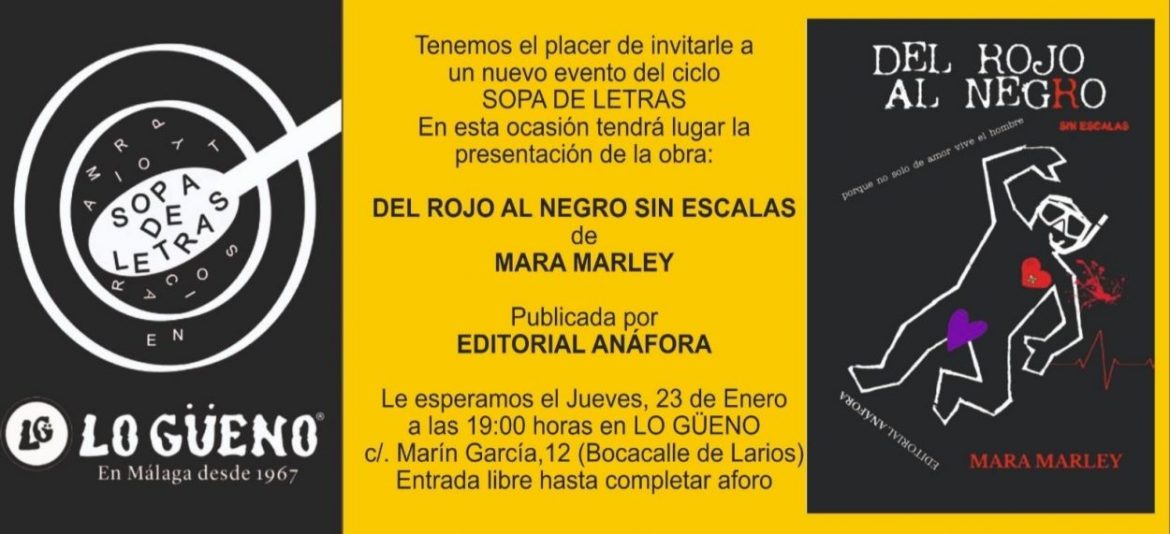 El día 23 de enero la escritora Mara Marley presentará su último libro, «Del rojo al negro, sin escalas».