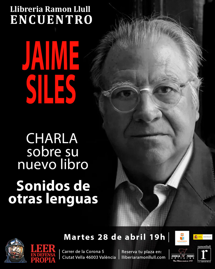 Jaime Siles presentará su ensayo SONIDOS DE OTRAS LENGUAS (Huerga & Fierro, 2025) el Martes, 28 de abril, a las 19:00 horas, en la llibreria Ramon Llull, C/ Corona, 5 – Valencia.