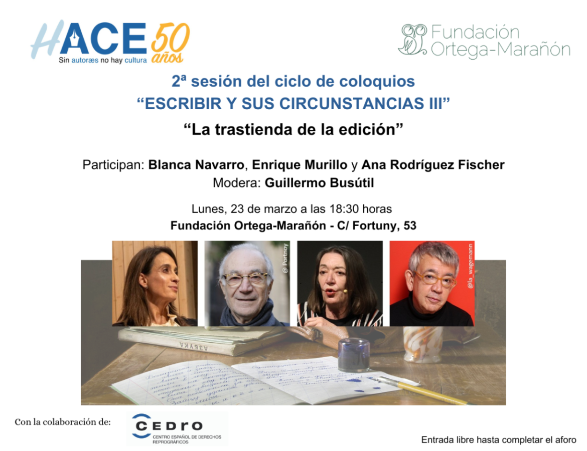 Inicio Agenda Literaria Nueva sesión del ciclo «Escribir y sus circunstancias»: «La trastienda de la edición»