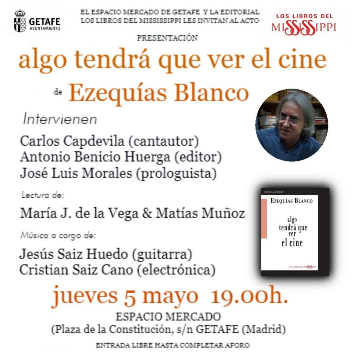 Jueves 5 de mayo a las 19:00 horas. Espacio Mercado ( Plaza de la Constitución s/n. Getafe. Madrid).
