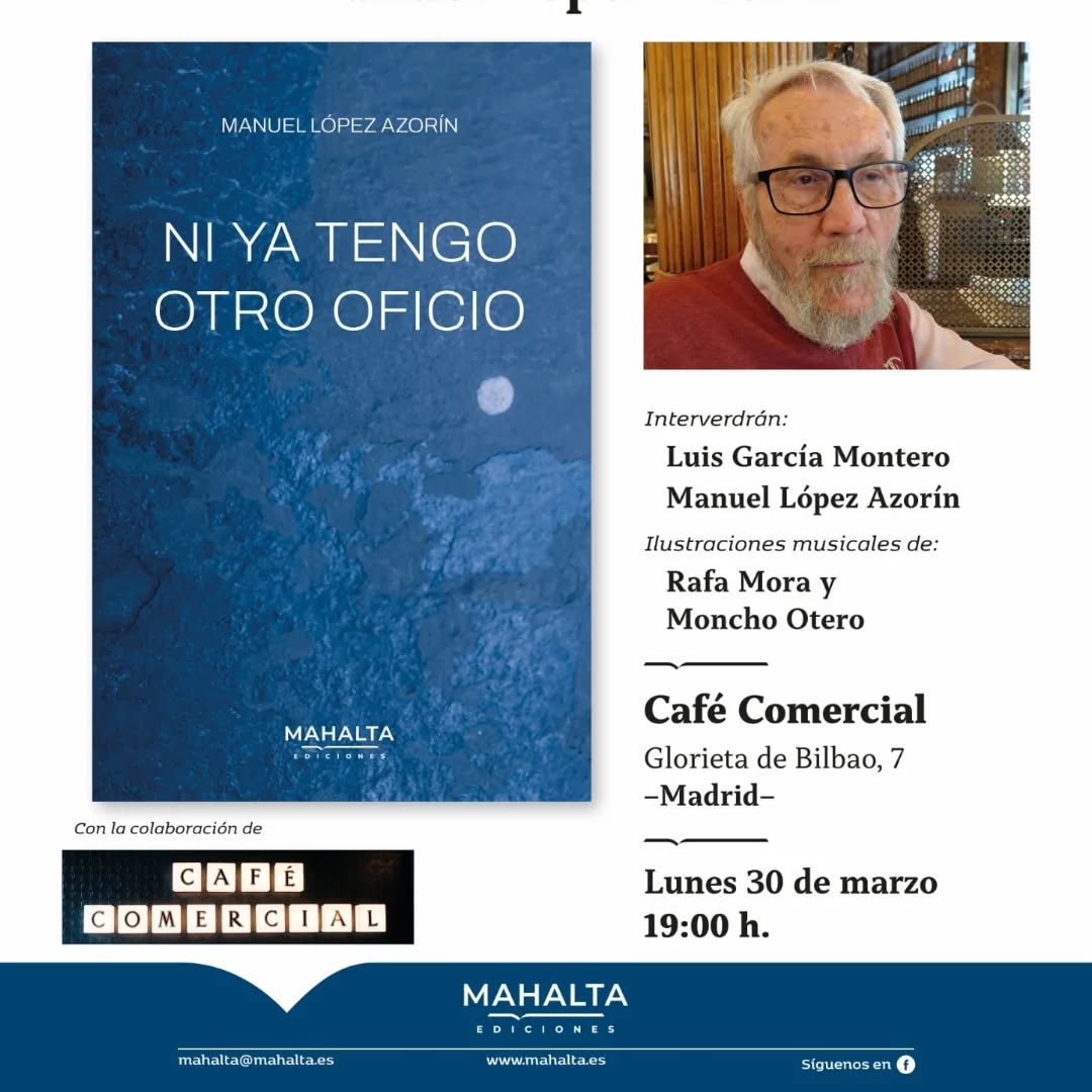 Al acto del presentación del libro Ni ya tengo otro oficio el autor estará acompañado por Luis García Montero. Con música de Rafa Mora y Moncho Otero.