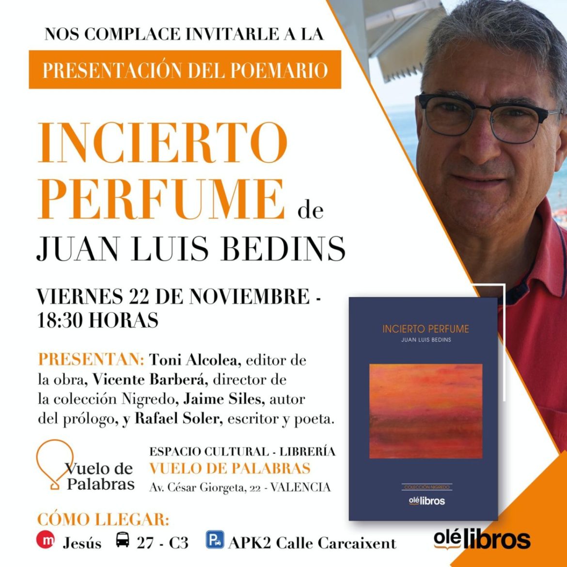 Inicio Agenda Literaria Presentación del poemario «Incierto perfume» de Juan Luis Bedins
